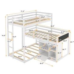 Twin Size L-shaped Wood Triple Bunk Bed With Storage Cabinet, Ladder And Blackboard-ModernLuxe