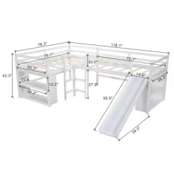 Twin Size L-Shaped Loft Bed With Movable Two-Tier Shelves And Slide – ModernLuxe