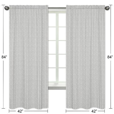 Gray and White Herringbone Print Woodland Friends Window Curtain Panel Set will help complete the look of your Sweet Jojo Designs room. These window treatments instantly change the look and feel of any room, adding layers of warmth and style. Each panel measures 84in. x 42in. Window Curtain Panel Set Includes: 2 Long Curtain Panels. Fits standard rods up to .75 inches in diameter.