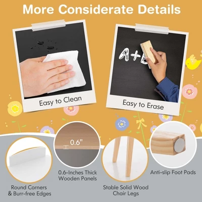 Costway Kids House-Shaped Table & Chair Set Wooden Toy Organizer Cabinet With Blackboard Grey/White