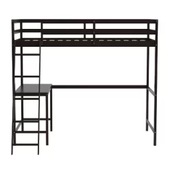 Emma And Oliver Twin Wood Loft Bed Frame With Protective Guardrails And Integrated Desk And Ladder For Use With Any 6-8″ Thick Mattress