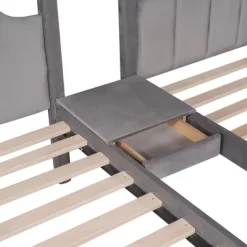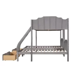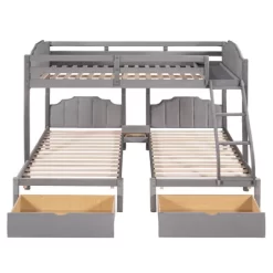 - [Multi-functional] This triple bed can be divided into three separate beds to meet your different needs. The shelf beside the upper full bed and the table with drawer between the two lower beds provide a place for you to put some daily supplies within easy reach, and the two pull-out drawers under the lower beds save space for you to store some clothes and toys.
