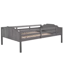 A perfect space-saving solution for multi-child families. A full bed combined with two twin beds, this triple bunk bed provides a convenient and flexible arrangement option for large families and sleepovers by taking advantage of vertical space. A gray finish enhances the smooth lines and adds a contemporary feel to any room set aside for multiple to sleep. Crafted with pine wood and plywood, this triple bunk bed is sturdy and durable to withstand the test of time. The angled ladder allows you to easily access the upper bed. Sturdy guardrails protect you as you sleep through the night. Ample storage space is provided by the two large drawers under the lower beds. This set works perfectly as a stacked full over twin & twin unit or divided into three separate beds. You can choose the combination method based on your own needs.