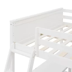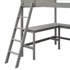 - ćSturdy ConstructionćThis multifunctional loft bed is made of solid pine wood frame with MDF board, which is sturdy and durable. A stable ladder can be assembled on the other side of the bed. Guardrails are securely attached for added safety.