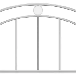 - Featuring arched panels with clean lines and metal posts in a silver finish