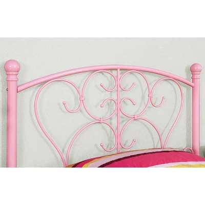 Fresh artistic inspiration turns a kid’s conventional bedroom into an elegant, pleasing princess palace. Featuring an arching headboard and footboard with beautiful filigree designs and corner posts with round finials, the Maureen Kids Metal Twin Bed from HOMES: Inside + Out brings a magical look to your child’s bedroom. The frame’s solid color will go great with any of your child’s pillows, sheets and blankets, while its steel construction creates a sturdy, long-lasting sleeping spot.