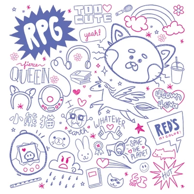 - Featuring a bunch of doodles of thinngs like pandas, Tamogotchi, rabbits, clouds, unicorns, and more!