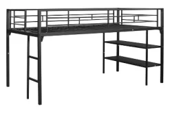 - [Space Saving] This loft bed is specially designed for rooms with limited floor space. The space under the bed can be used as a gaming, lounging, study area, or even a workstation. Built-in shelves provide storage space and save your budget. It also gives you the flexibility to adapt to various options.