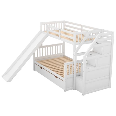Make full use of the structure of the bed itself to create a suitable home environment for you, this bed is a great choice! The seemingly simple appearance is actually fully functional. At least two family members can share this bunk bed. The two drawers under the bed and the storage rack on the ladder are enough to store the items. The design of the slide is safe and increases the fun of the children. The ladder structure is strong with handrails. Assembly needed. Share the fun of installation together and create a comfortable and fun sleeping environment for you.
