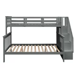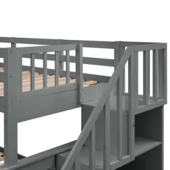 If you want an elegant and stylish bunk bed, this bed will definitely meet your needs. Stairs provide ample storage for your child’s toys and bedding. High-quality solid pine legs and a strong and durable frame ensure stability and durability for long-term use. Batten kit included so box spring is not required. This bunk bed is designed with clean silhouettes and elegant shades.