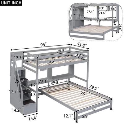 - ćMultifunctional DesignćThe multifunctional design of this bed allows you to save yourself from buying too much furniture. Built-in desks and bookshelves provide you with space for office and study. Stair storage is designed to keep your belongings organized. At the same time, it is also equipped with a hanger, which can be used to hang clothes.