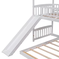 - [Friendly Design]Crafted with a whimsical playhouse design, and comes with a slide, this bunk bed offers a comfortable and exhilarating experience during both sleep and playtime that will let your imaginations run wild. Perfect for hours of entertainment and relaxation, the playhouse design makes this bunk the perfect centerpiece for your bedroom.