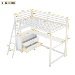 - ćMultifunctional DesignćThis loft bed includes a desk, shelf and two large storage drawers. It not only provides you with a place to work or study, but also provides ample storage space.