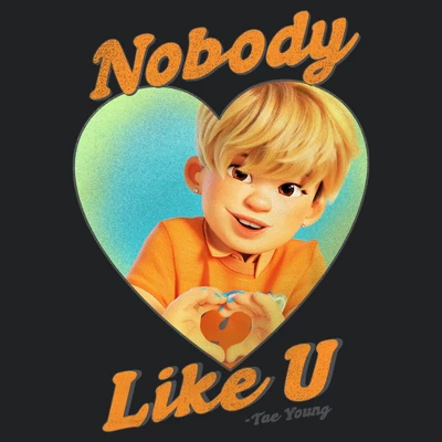 - Featuring a grpahic of Tae Young in a heart with “Nobody Like U’ printed around him